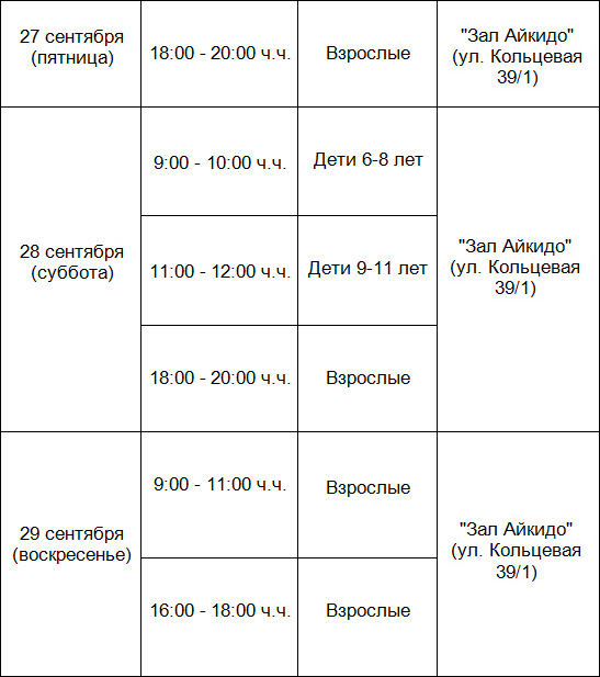 27-29 сентября 2019 состоится семинар по айкидо под руководством:
