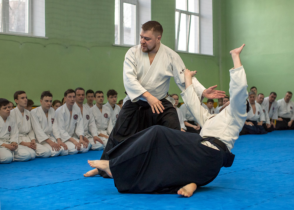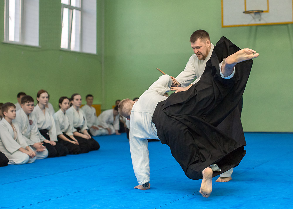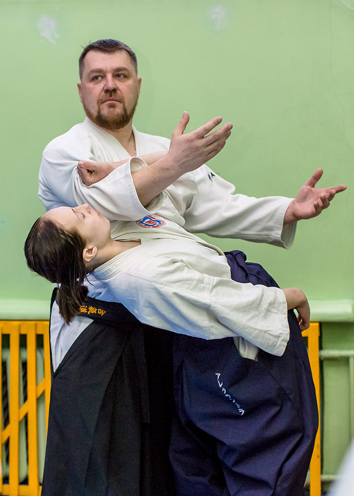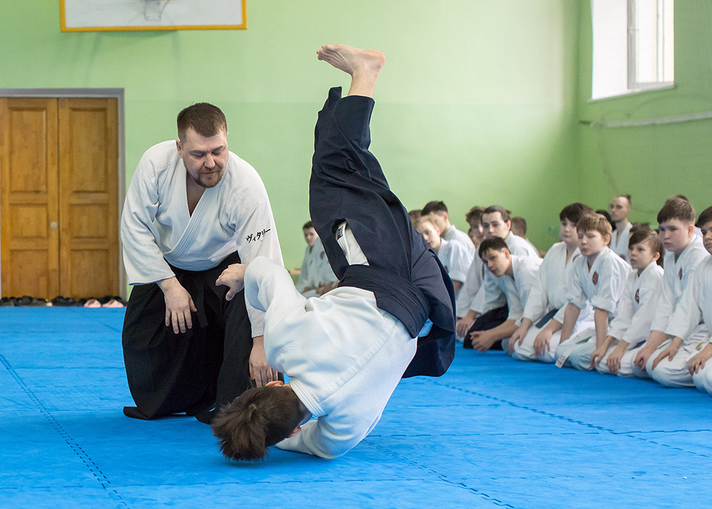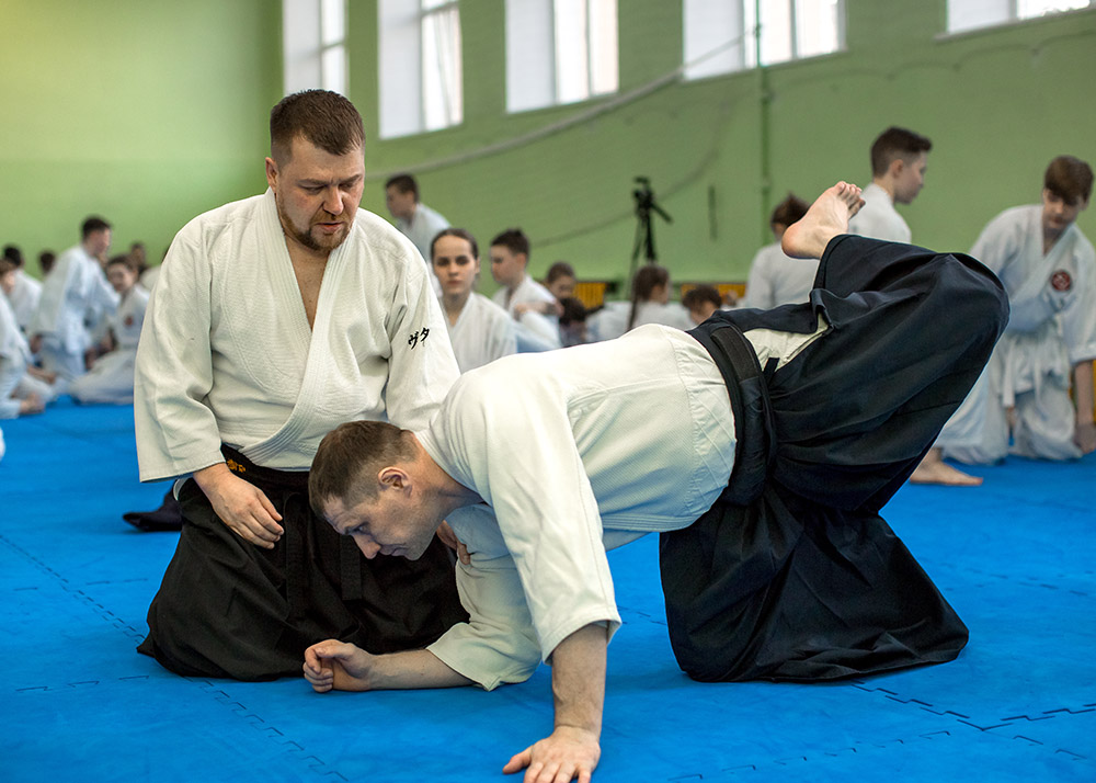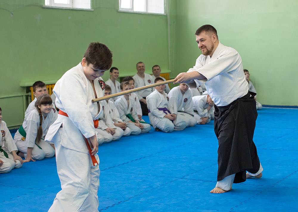 С 1 по 3 апреля 2022 г. в АООСО Айкидо Айкикай «Семь самураев» прошел семинар по айкидо под руководством вице-президента федерации «Дзикисинкай России» — руководителя школы «Дзикисинкай» города Новосибирска — Корнева Виталия Анатольевича (5 дан Айкидо Айкикай). Это был плодотворный семинар. Мастер провел 6 тренировок (по два часа каждая). Это уже четвертый приезд Виталия Анатольевича, прошлый раз Виталий Анатольевич приезжал в нашу организацию ровно год назад.На ковре собрались больше 80 спортсменов. Приехали отточить свое мастерство и научиться чему то новому спортсмены с других регионов — Хабаровска и Комсомольска на Амуре. С первого дня занятий ученики включились в работу. На тренировках мастер показал и рассказал о взаимосвязи двух партнеров, о работе на чувствительность, о принципах айкидо. Много времени уделил страховке, техникам на коленях, болевым удержаниям, удушению, а так же приемам, переходящих из одного в другой. В течении семинара Виталий Анатольевич продемонстрировал множество интересных технических моментов. Уделил внимание каждому, кто был в зале. Много нового и интересного узнали наши ученики, увидели айкидо с другой стороны. Мы всегда открыты для новых знаний. Виталий Анатольевич похвалил всех участников семинара, и сказал, что по сравнению с прошлым годом — техника людей возросла. Два часа тренировок были посвящены детским группам. Детей разделили на две возрастные категории 6-8 и 9-11 лет. В каждой группе Виталий Анатольевич давал интересные подготовительные упражнения в игровой форме, соответствующие возрасту, для того чтобы юные спортсмены научились делать страховку и понимать принципы айкидо. Методически грамотно строились тренировки. Чтобы лучше прочувствовать техники выведения, задействовали мячи. Также детей поделили на небольшие команды, для удобной работы на татами. Отрабатывались базовые техники (броски, удержания). Детям было очень интересно. Это был один из лучших детских семинаров по айкидо за все время. Семинар юным спортсменам понравился. И в завершении мероприятия все сфотографировались на память. От лица нашей организации большое спасибо Корневу Виталию Анатольевичу.