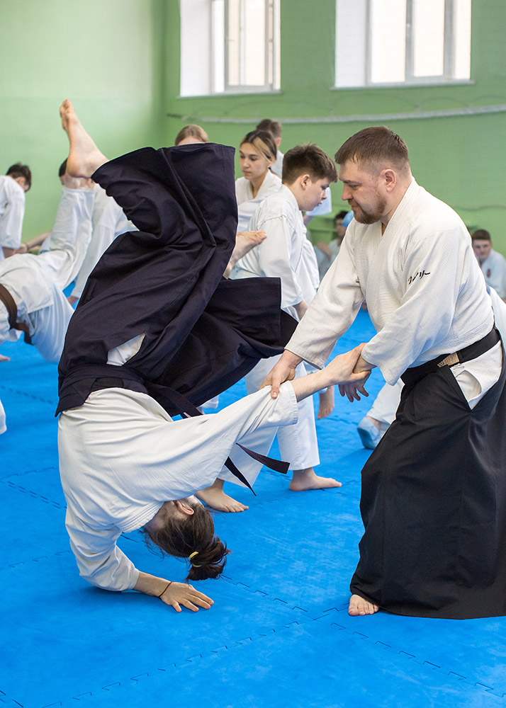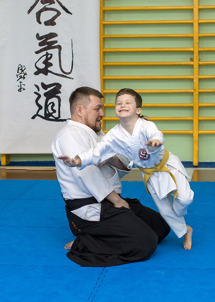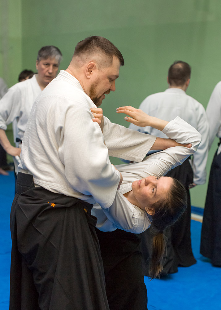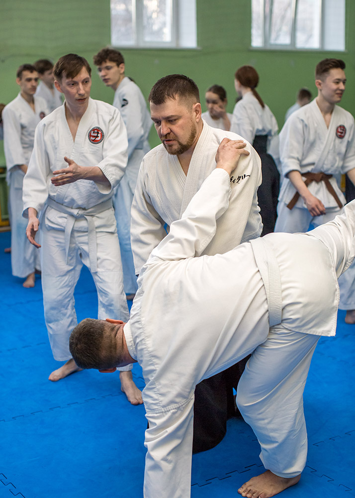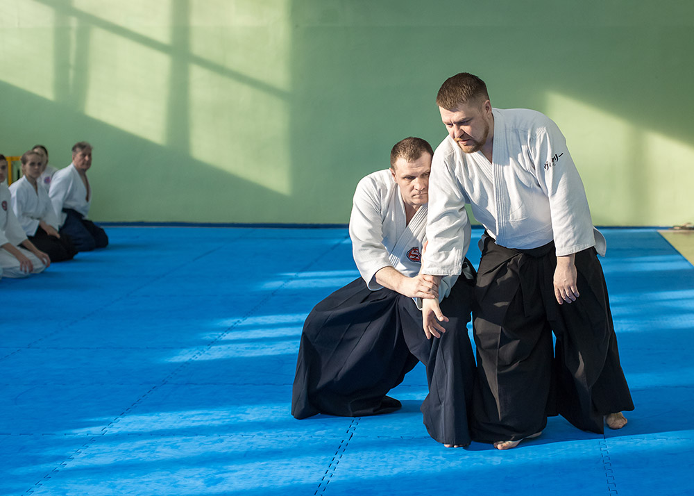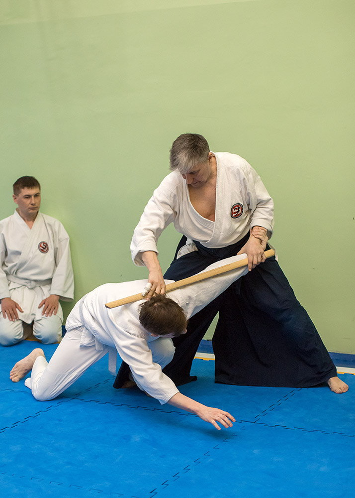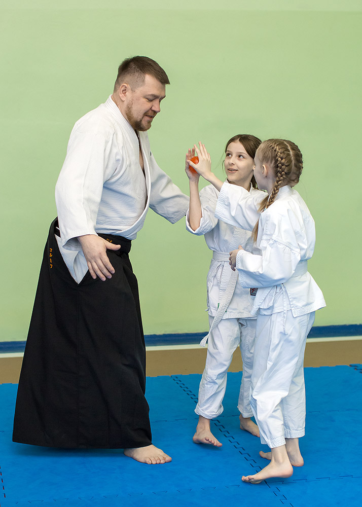 С 1 по 3 апреля 2022 г. в АООСО Айкидо Айкикай «Семь самураев» прошел семинар по айкидо под руководством вице-президента федерации «Дзикисинкай России» — руководителя школы «Дзикисинкай» города Новосибирска — Корнева Виталия Анатольевича (5 дан Айкидо Айкикай). Это был плодотворный семинар. Мастер провел 6 тренировок (по два часа каждая). Это уже четвертый приезд Виталия Анатольевича, прошлый раз Виталий Анатольевич приезжал в нашу организацию ровно год назад.На ковре собрались больше 80 спортсменов. Приехали отточить свое мастерство и научиться чему то новому спортсмены с других регионов — Хабаровска и Комсомольска на Амуре. С первого дня занятий ученики включились в работу. На тренировках мастер показал и рассказал о взаимосвязи двух партнеров, о работе на чувствительность, о принципах айкидо. Много времени уделил страховке, техникам на коленях, болевым удержаниям, удушению, а так же приемам, переходящих из одного в другой. В течении семинара Виталий Анатольевич продемонстрировал множество интересных технических моментов. Уделил внимание каждому, кто был в зале. Много нового и интересного узнали наши ученики, увидели айкидо с другой стороны. Мы всегда открыты для новых знаний. Виталий Анатольевич похвалил всех участников семинара, и сказал, что по сравнению с прошлым годом — техника людей возросла. Два часа тренировок были посвящены детским группам. Детей разделили на две возрастные категории 6-8 и 9-11 лет. В каждой группе Виталий Анатольевич давал интересные подготовительные упражнения в игровой форме, соответствующие возрасту, для того чтобы юные спортсмены научились делать страховку и понимать принципы айкидо. Методически грамотно строились тренировки. Чтобы лучше прочувствовать техники выведения, задействовали мячи. Также детей поделили на небольшие команды, для удобной работы на татами. Отрабатывались базовые техники (броски, удержания). Детям было очень интересно. Это был один из лучших детских семинаров по айкидо за все время. Семинар юным спортсменам понравился. И в завершении мероприятия все сфотографировались на память. От лица нашей организации большое спасибо Корневу Виталию Анатольевичу.