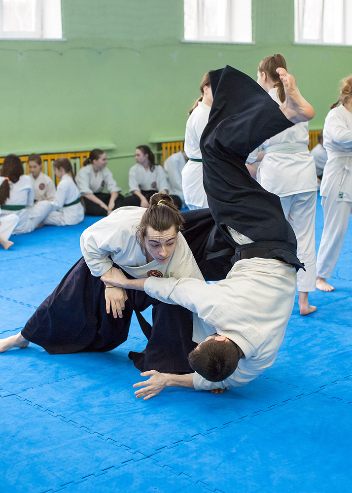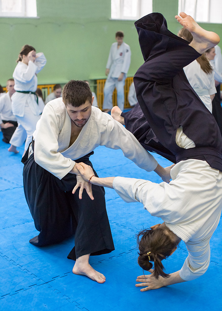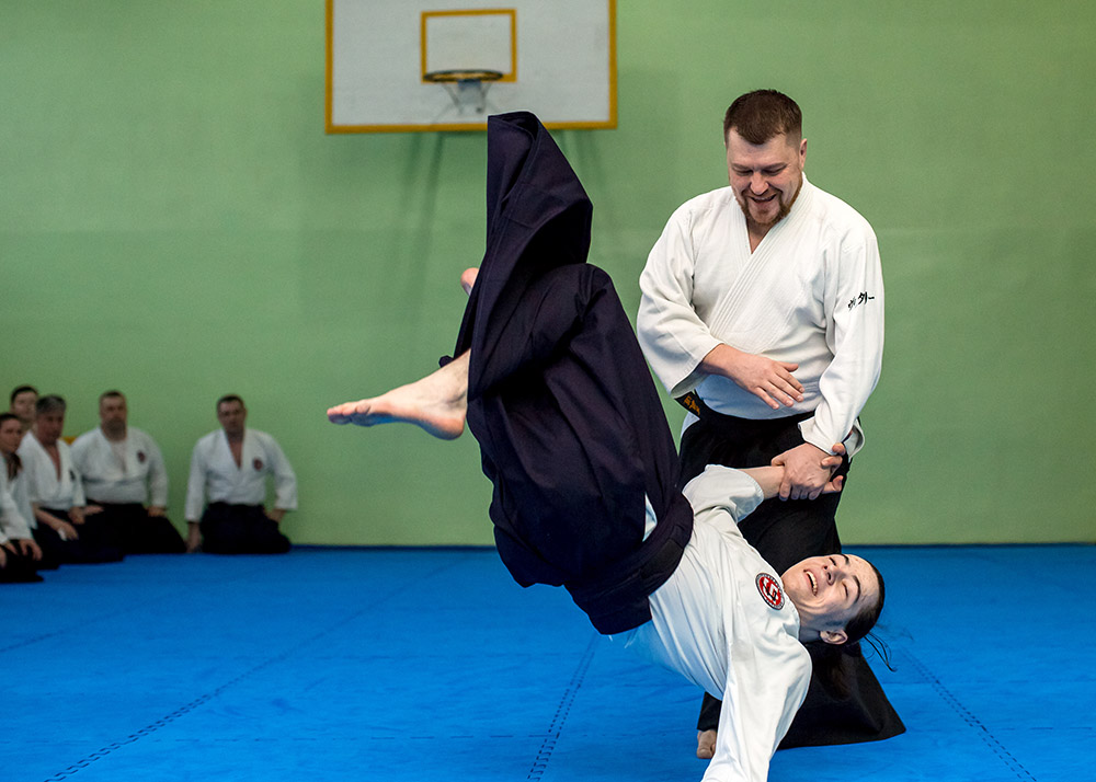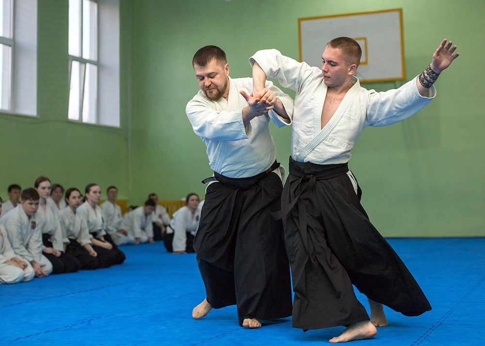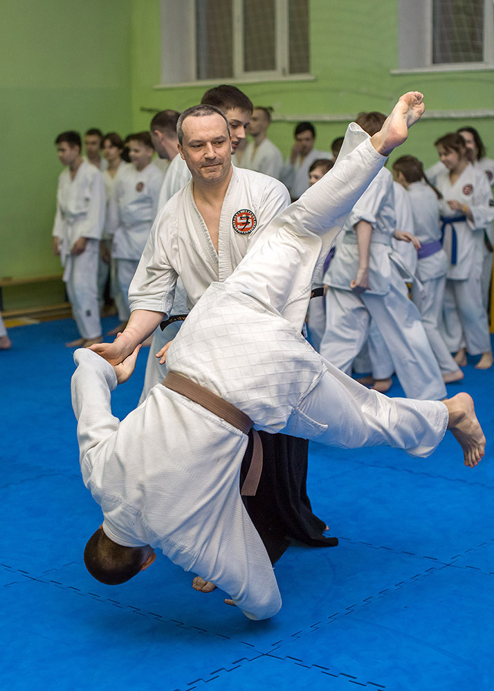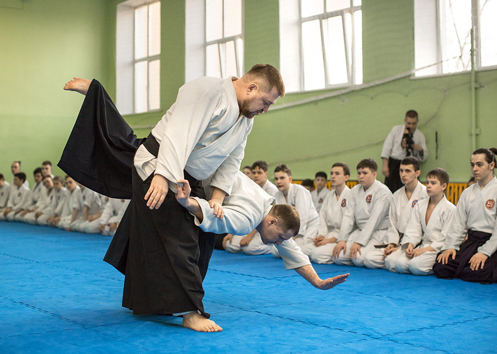 С 1 по 3 апреля 2022 г. в АООСО Айкидо Айкикай «Семь самураев» прошел семинар по айкидо под руководством вице-президента федерации «Дзикисинкай России» — руководителя школы «Дзикисинкай» города Новосибирска — Корнева Виталия Анатольевича (5 дан Айкидо Айкикай). Это был плодотворный семинар. Мастер провел 6 тренировок (по два часа каждая). Это уже четвертый приезд Виталия Анатольевича, прошлый раз Виталий Анатольевич приезжал в нашу организацию ровно год назад.На ковре собрались больше 80 спортсменов. Приехали отточить свое мастерство и научиться чему то новому спортсмены с других регионов — Хабаровска и Комсомольска на Амуре. С первого дня занятий ученики включились в работу. На тренировках мастер показал и рассказал о взаимосвязи двух партнеров, о работе на чувствительность, о принципах айкидо. Много времени уделил страховке, техникам на коленях, болевым удержаниям, удушению, а так же приемам, переходящих из одного в другой. В течении семинара Виталий Анатольевич продемонстрировал множество интересных технических моментов. Уделил внимание каждому, кто был в зале. Много нового и интересного узнали наши ученики, увидели айкидо с другой стороны. Мы всегда открыты для новых знаний. Виталий Анатольевич похвалил всех участников семинара, и сказал, что по сравнению с прошлым годом — техника людей возросла. Два часа тренировок были посвящены детским группам. Детей разделили на две возрастные категории 6-8 и 9-11 лет. В каждой группе Виталий Анатольевич давал интересные подготовительные упражнения в игровой форме, соответствующие возрасту, для того чтобы юные спортсмены научились делать страховку и понимать принципы айкидо. Методически грамотно строились тренировки. Чтобы лучше прочувствовать техники выведения, задействовали мячи. Также детей поделили на небольшие команды, для удобной работы на татами. Отрабатывались базовые техники (броски, удержания). Детям было очень интересно. Это был один из лучших детских семинаров по айкидо за все время. Семинар юным спортсменам понравился. И в завершении мероприятия все сфотографировались на память. От лица нашей организации большое спасибо Корневу Виталию Анатольевичу.