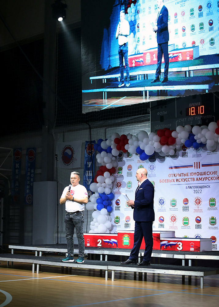 Торжественное открытие мероприятия прошло при участии исполнительного директора Российского Союза боевых искусств Габбасова Р.Г., консультанта по организации и проведению общественных и спортивных проектов на территории субъектов Российский Федерации, входящих в состав ДФО, Мохирева В.Э., представителей аппарата Губернатора и Правительства Амурской области, администрации и мэра г. Благовещенска.