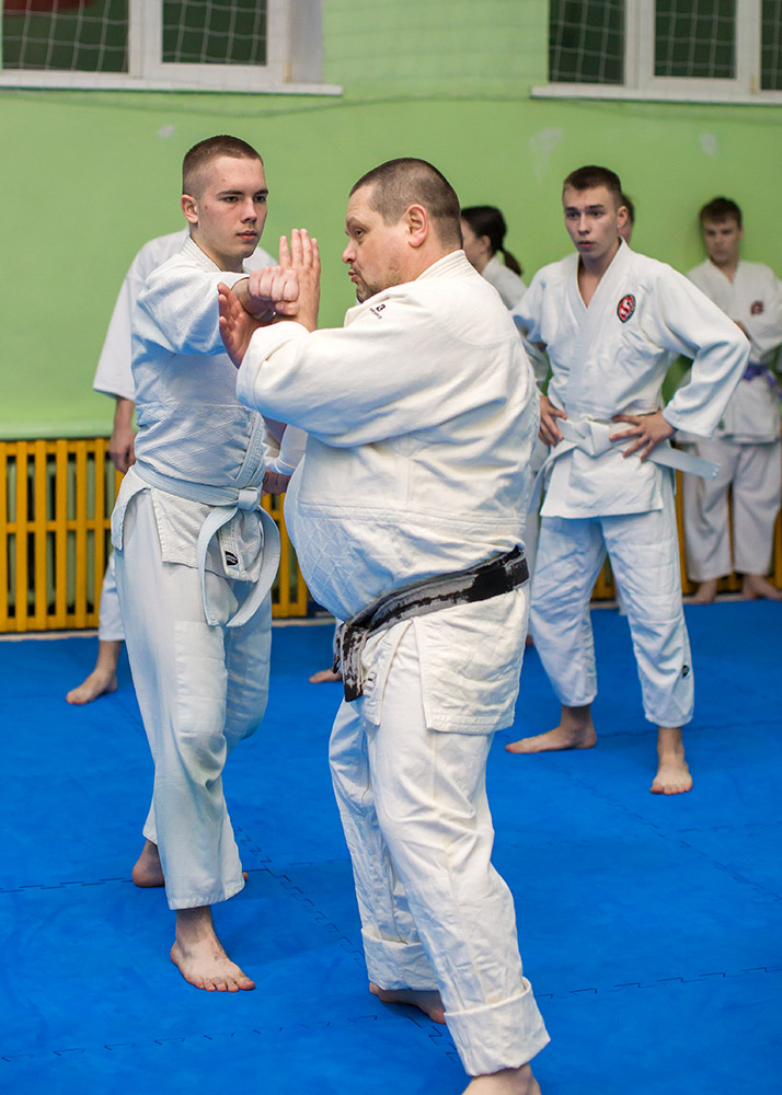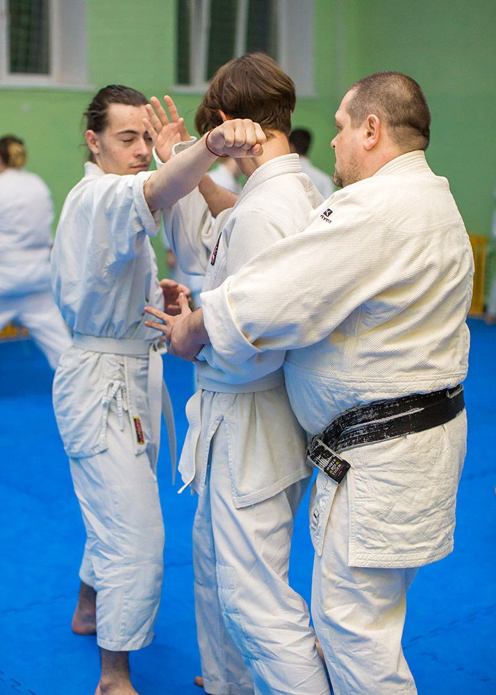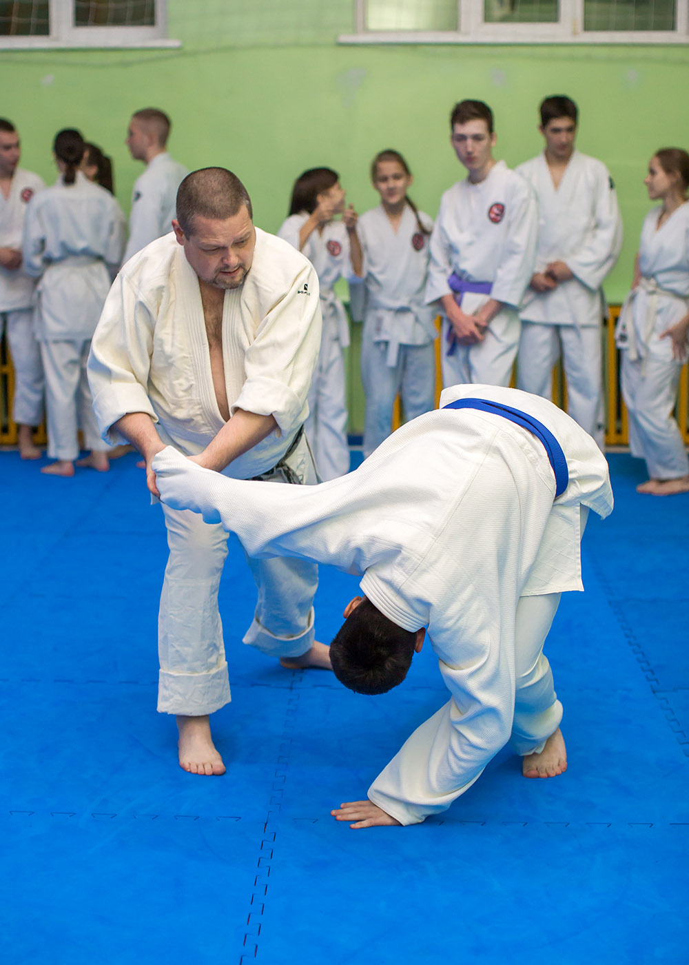 С 03 по 06 октября, в городе Благовещенске, по приглашению нашей организации, «Nihon den Jujutsu Academy Ju Toku Juku» организовала семинар по Японскому джиу джицу. Провел семинар Сэнсэй Содрицов Ярослав. За четыре дня прошли семь полноценных тренировок. Сэнсэй Ярослав за это время разобрал с нашей группой базовые экзаменационные техники с 6 кю по 1 кю. И немного познакомил с техникой на 1 дан. На ковре собрались больше 90 спортсменов. С первого дня занятий наши ученики включились в работу. Тренировки Сэнсэй Ярослав строил от простого к сложному, методически грамотно, много подводящих элементов было показано на занятиях. Все спортсмены были увлечены работой. На тренировках мастер показал и рассказал о взаимосвязи двух партнеров, работе на чувствительность, о принципах айки и кудзуси. Много времени уделил страховке, болевым удержаниям, удушениям. В течение семинара Сэнсэй Ярослав продемонстрировал множество интересных технических моментов. Методически грамотно разложил каждую технику. Уделил внимание каждому ученику. Много нового и интересного узнали наши ученики о «Nihon den Jujutsu Academy Ju Toku Juku». Мы всегда открыты для новых знаний, и хотим учиться у лучших мастеров нашей страны. Заключительный час нашей встречи был посвящен торжественному вручению дипломов о участии в семинаре. Хочется поблагодарить сэнсэя Ярослава за приезд в наш город. За его интересный и познавательный семинар по «Nihon den Jujutsu Academy Ju Toku Juku». Большое спасибо сэнсэю за переданные знания, над осмыслением которых нам придется еще много работать. И как всегда по традиции была сделана групповая фотография на память о семинаре.