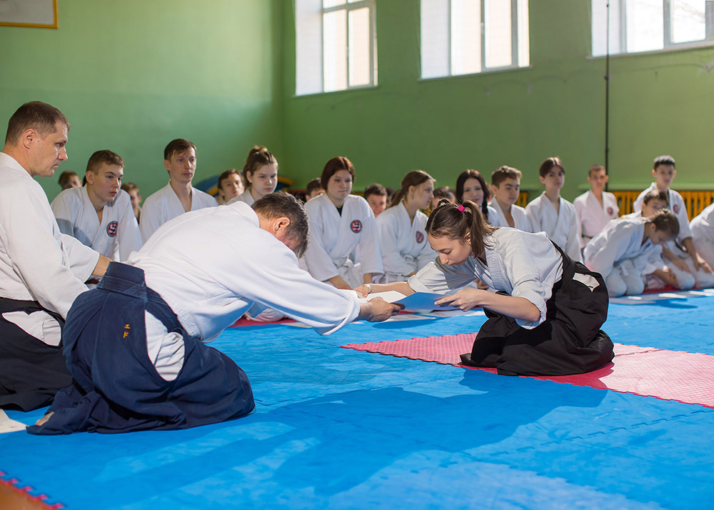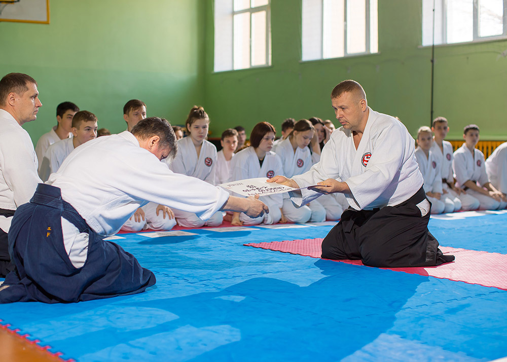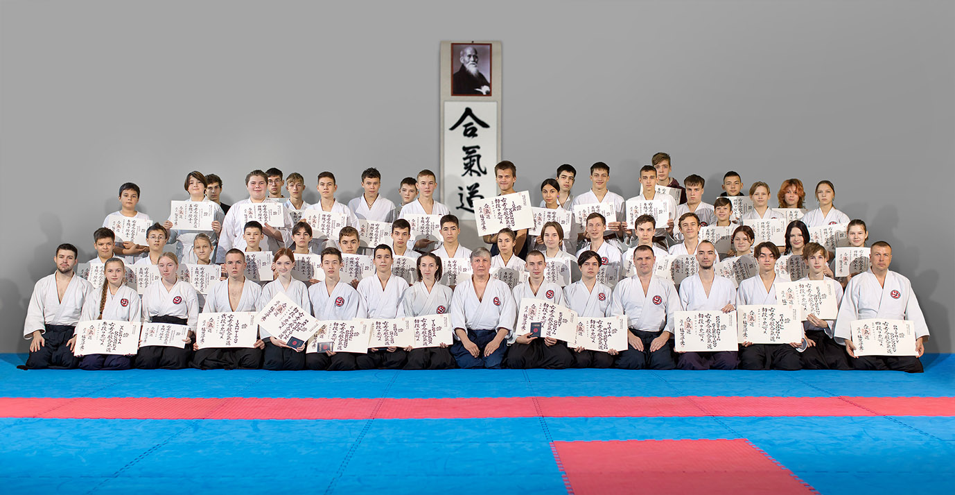 В начале октября пришла долгожданная посылка из Японии, международный отдел Хомбу додзе (Токио) переслал дипломы наших спортсменов, подтверждающие успешную сдачу экзамена. Более 70 человек пришли в этот день получить сертификаты подписанные Дошу Уесиба Моритеру.