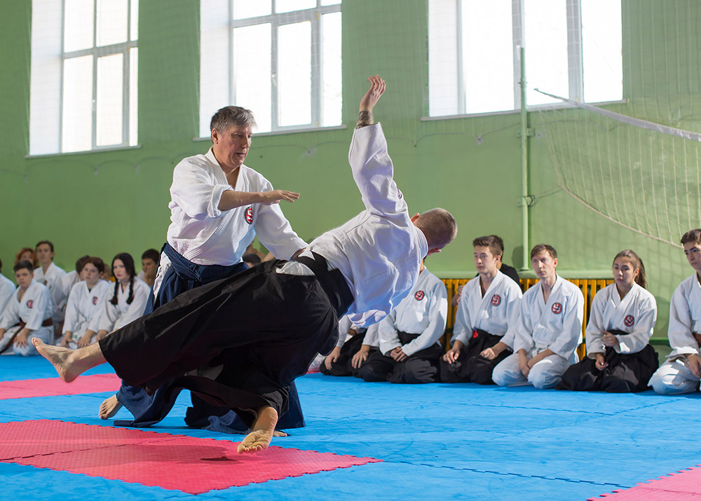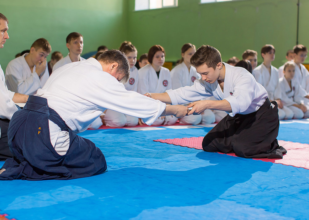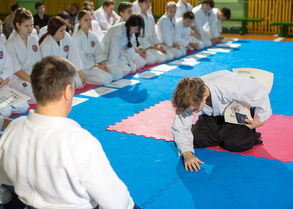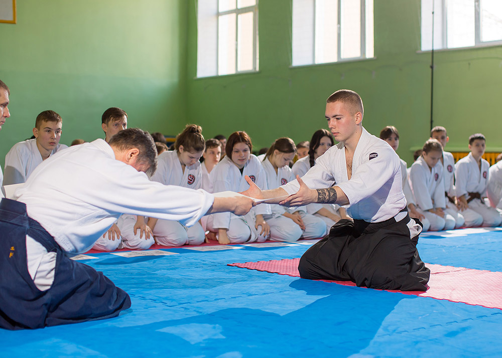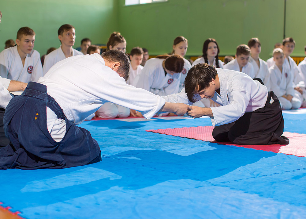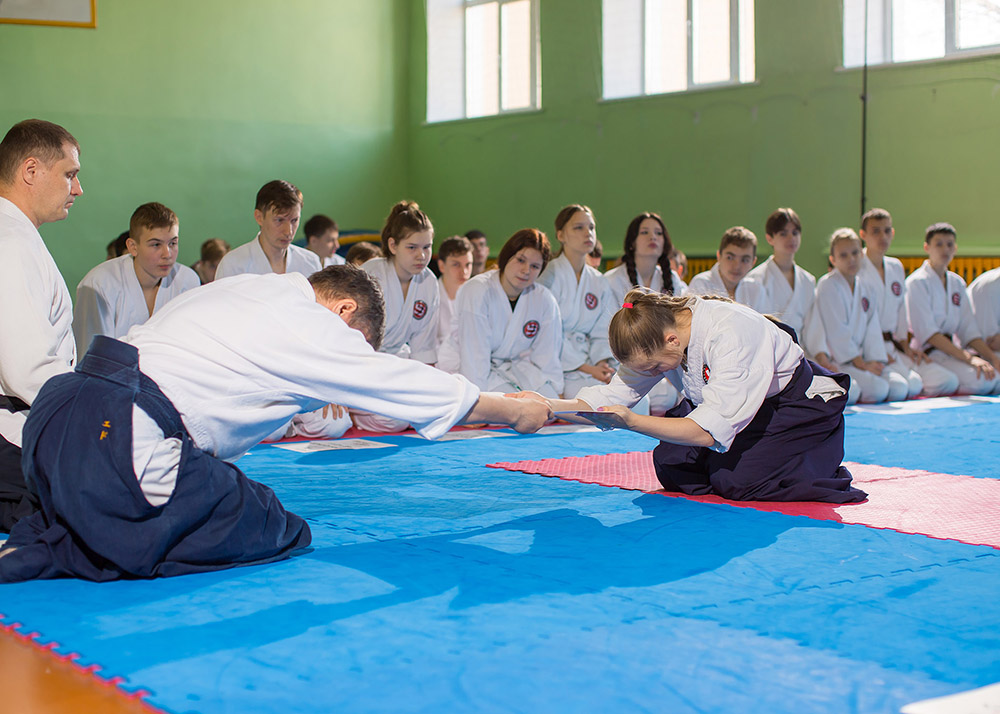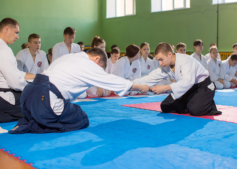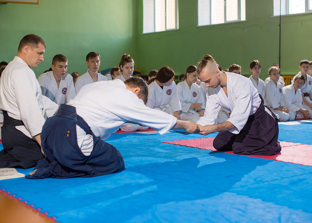 В одном из залов нашего города, 40 минутной тренировкой, открыл мероприятие председатель организации — Мезенцев Э.И. Спортсмены работали в приподнятом настроении, разобрали базовые формы айкидо.