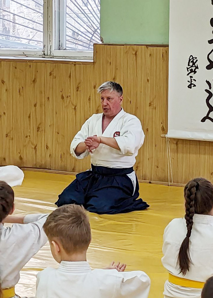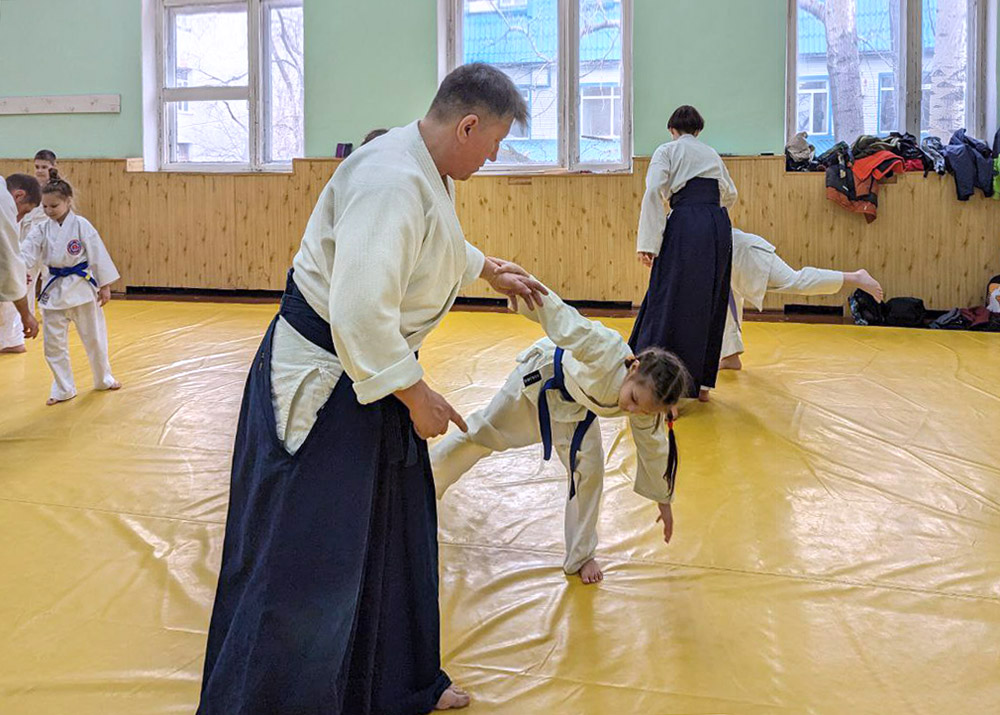 С 21 по 23 апреля 2023 г. прошел очередной семинар по айкидо в городе Комсомольске-на-Амуре в Федерации Айкидо Айкикай Хабаровского края. Провёл семинар председатель Организации Айкидо Айкикай «Семь самураев» Мезенцев Э.И. (5 дан). На три дня было запланировано восемь тренировочных занятий, четыре из них для взрослой группы, и четыре для детских групп. Детские тренировки решили провести так, чтобы дети окунулись в игровую атмосферу с элементами айкидо, и тогда техника не показалась им сложной. Юные спортсмены активно тренировались: сделали общеукрепляющие упражнения, страховку, поработали над упражнениями на выведение из равновесия, а затем перешли на приемы.
