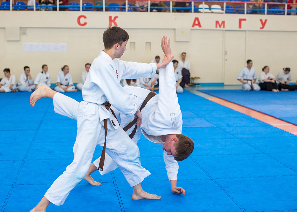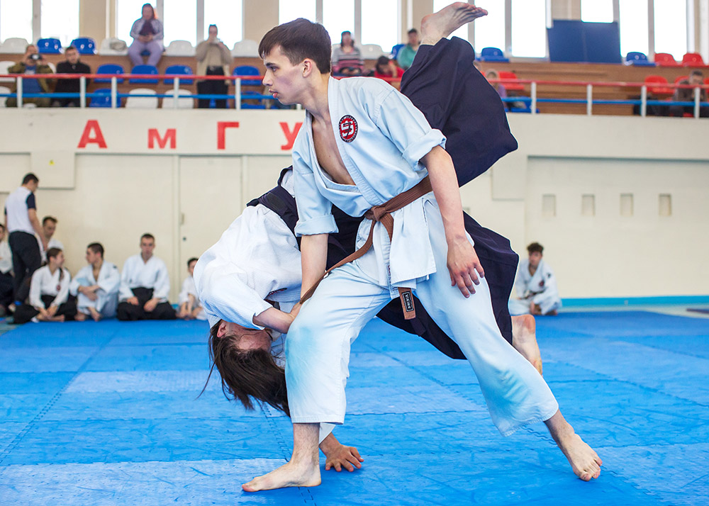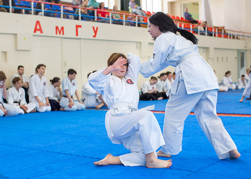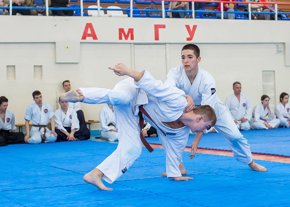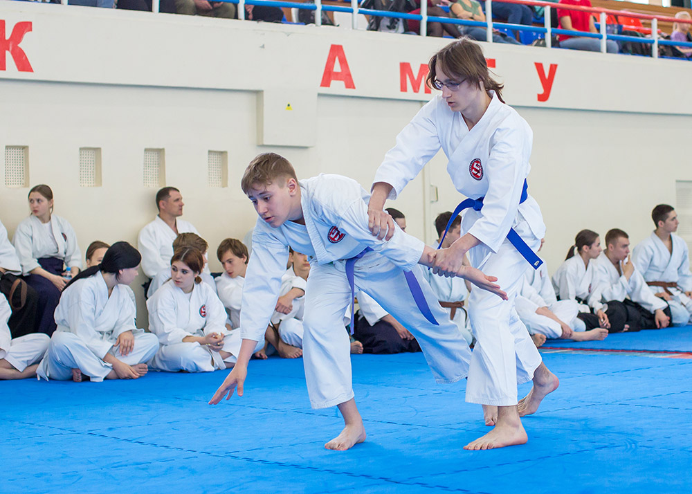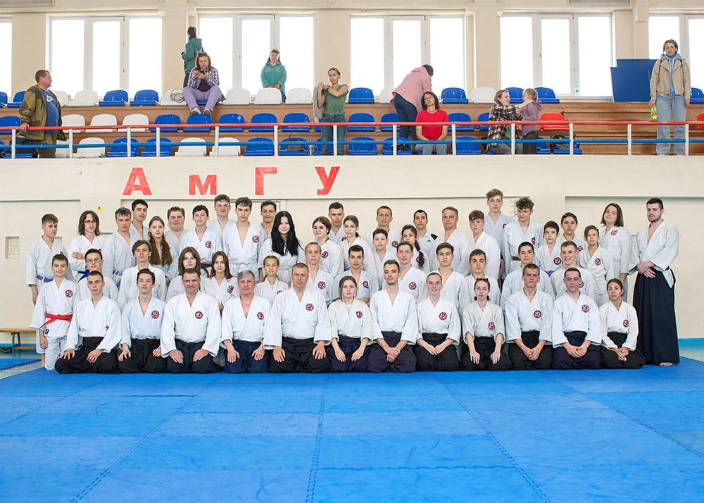 28 мая 2023 г. в спортивном комплексе АмГУ в АООСО Айкидо Айкикай «Семь самураев» прошел международный квалификационный экзамен по айкидо. По решению штаб-квартиры международного отдела Хомбу Додзе (Токио Япония), председателю АООСО Айкидо Айкикай «Семь самураев» Мезенцеву Э.И было поручено провести этот экзамен. К сдаче были допущены 44 человека, спортсмены сдавали на 5-1 Кю и 1, Дан.