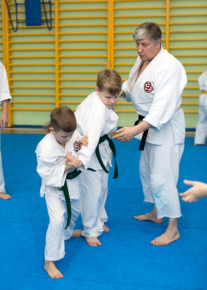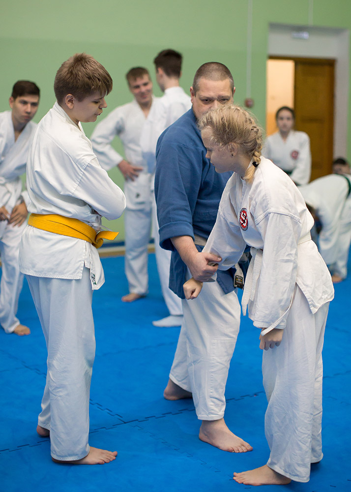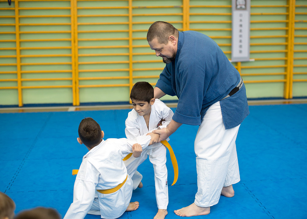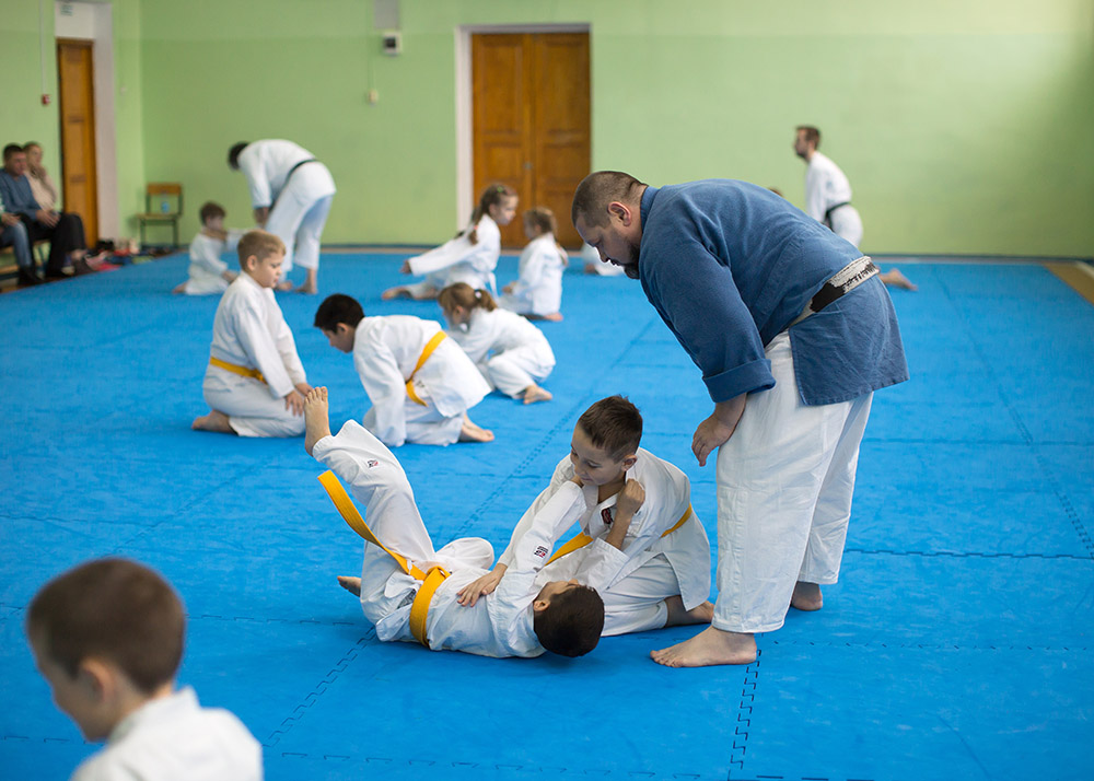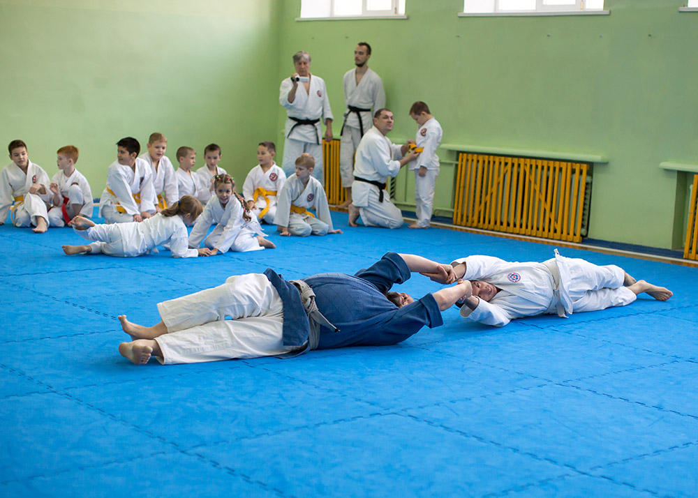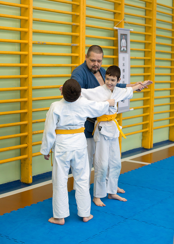5 ноября два часа тренировок были посвящены детским группам. Детей разделили на две возрастные категории 6-8 и 9-11 лет. В каждой группе Сэнсэй Ярослав давал интересные подготовительные упражнения в игровой форме, соответствующие возрасту, для того чтобы юные спортсмены научились делать страховку, лучше прочувствовали техники выведения. Так же детей поделили на небольшие команды, для удобной работы на татами. Отрабатывались базовые техники (броски, удержания). Семинар юным спортсменам понравился, детям было очень интересно и весело.