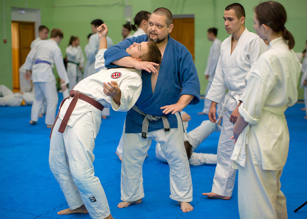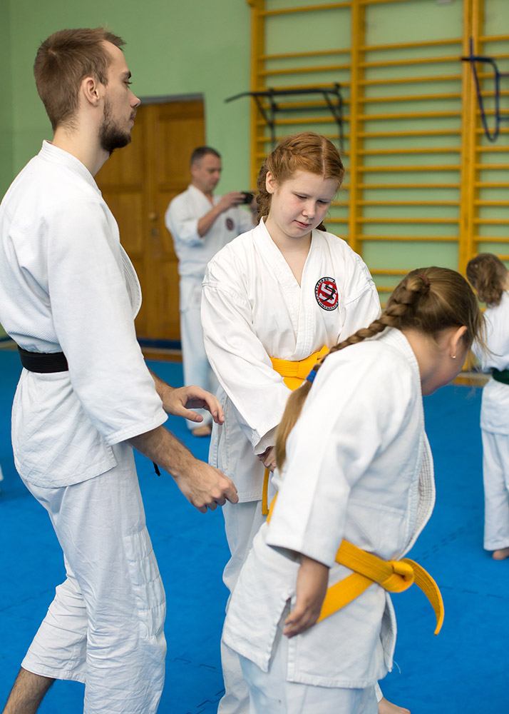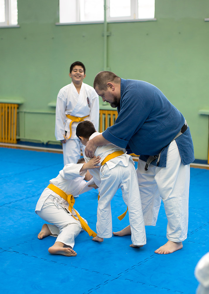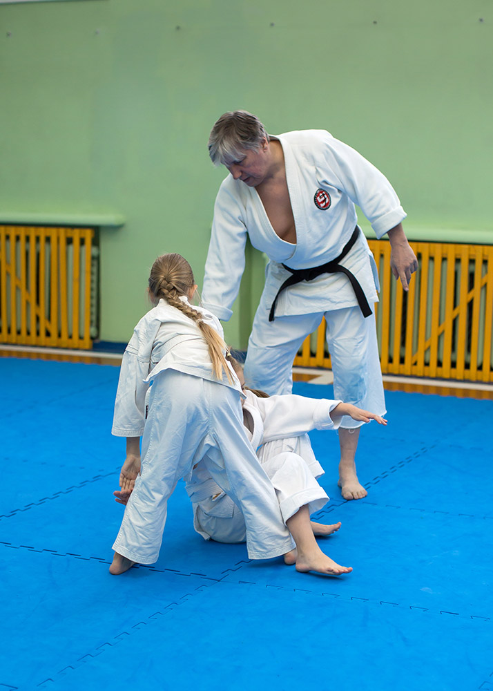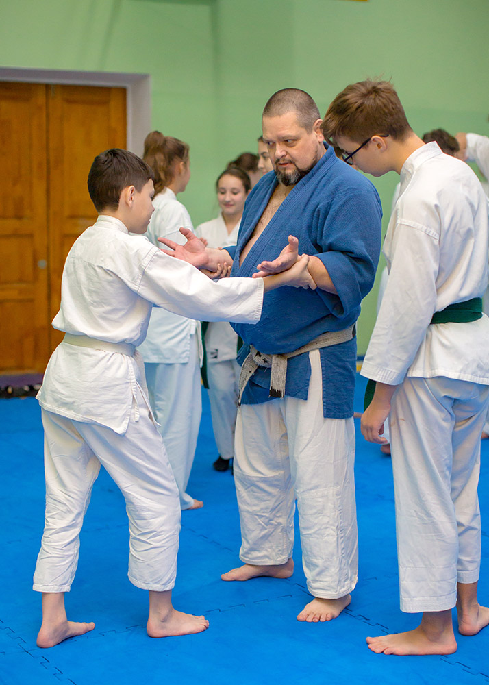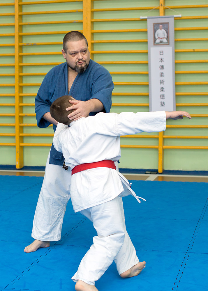 5 ноября два часа тренировок были посвящены детским группам. Детей разделили на две возрастные категории 6-8 и 9-11 лет. В каждой группе Сэнсэй Ярослав давал интересные подготовительные упражнения в игровой форме, соответствующие возрасту, для того чтобы юные спортсмены научились делать страховку, лучше прочувствовали техники выведения. Так же детей поделили на небольшие команды, для удобной работы на татами. Отрабатывались базовые техники (броски, удержания). Семинар юным спортсменам понравился, детям было очень интересно и весело.