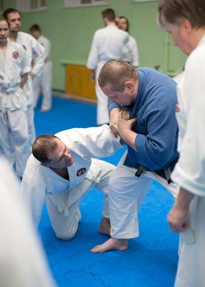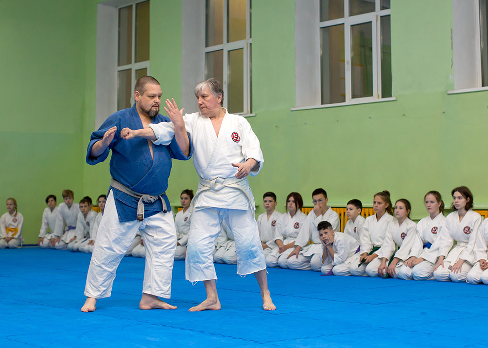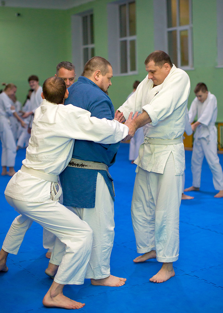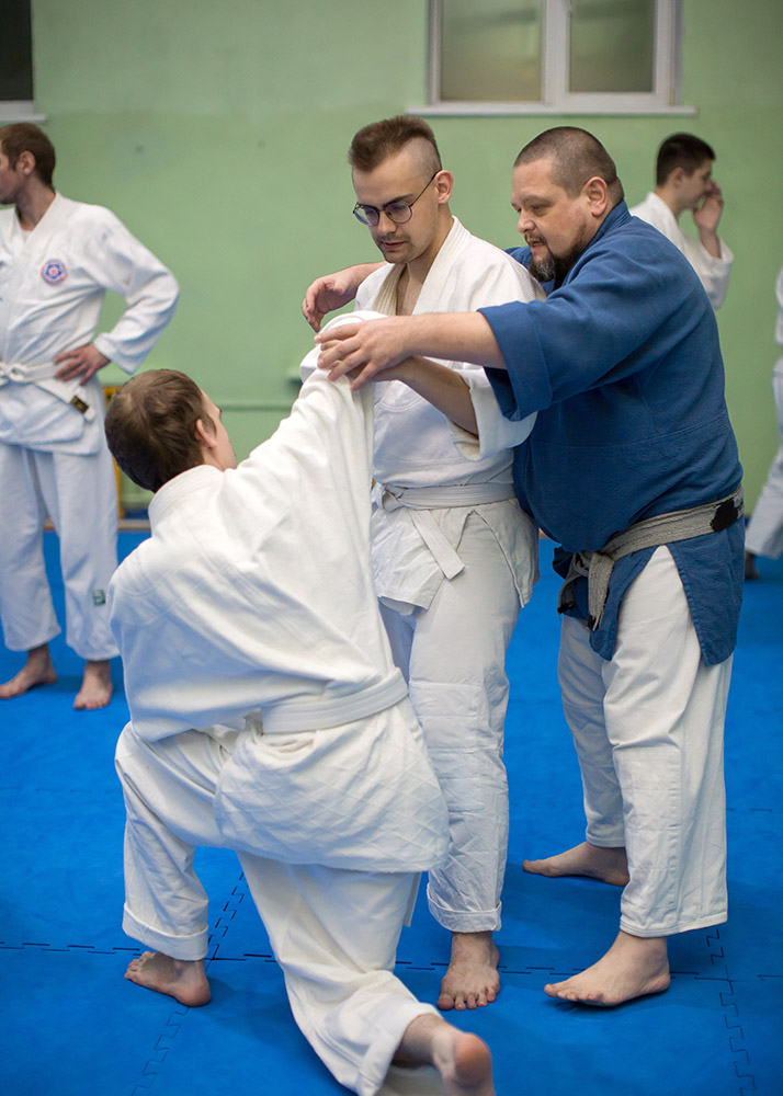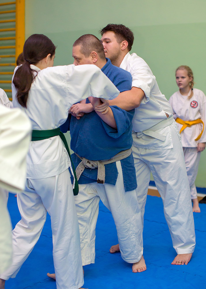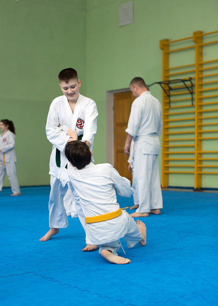 5 ноября два часа тренировок были посвящены детским группам. Детей разделили на две возрастные категории 6-8 и 9-11 лет. В каждой группе Сэнсэй Ярослав давал интересные подготовительные упражнения в игровой форме, соответствующие возрасту, для того чтобы юные спортсмены научились делать страховку, лучше прочувствовали техники выведения. Так же детей поделили на небольшие команды, для удобной работы на татами. Отрабатывались базовые техники (броски, удержания). Семинар юным спортсменам понравился, детям было очень интересно и весело.
