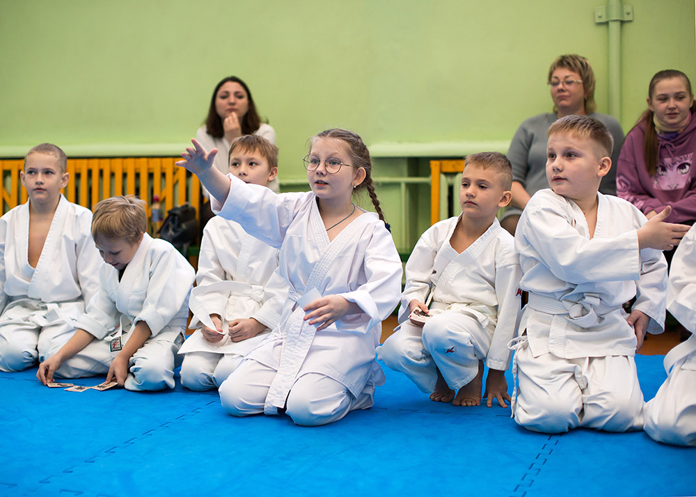 Продолжили праздничную программу викториной. Ребятам задавали вопросы, связанные с историей айкидо. Кто из спортсменов отвечал правильно и быстрее всех, получал «карточку самурая». Больше всех карточек собрала Ницак Диана.