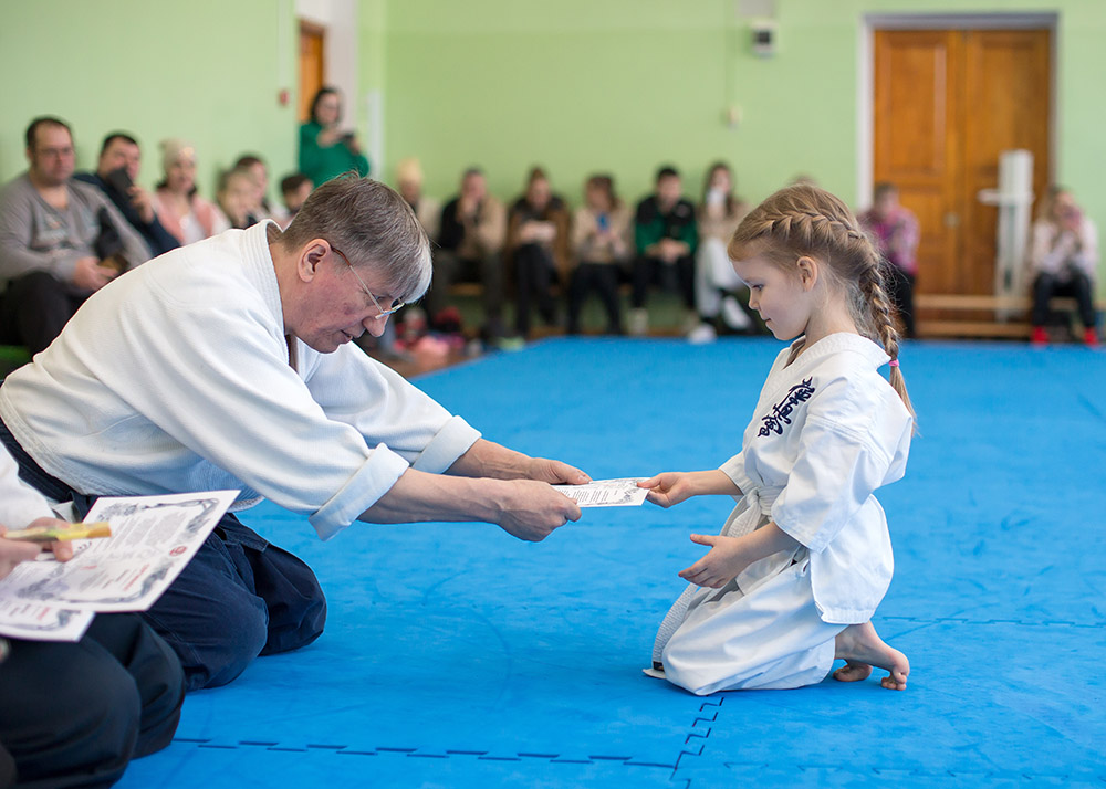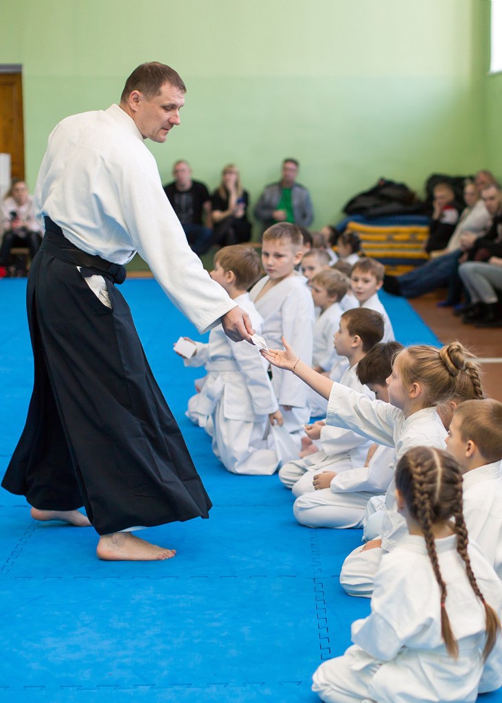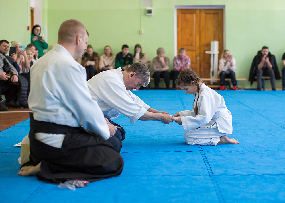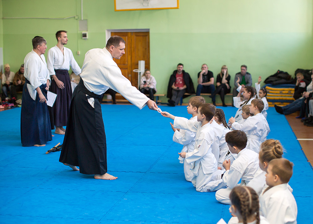 В воскресенье, 10 декабря, в одном из залов нашего города прошло мероприятие под названием «Посвящение в айкидоки». Ранним утром, на татами собрались 20 юных спортсменов, записавшихся в организацию в начале учебного года. Поддержать спортсменов пришли их родители и друзья. Для ребят, тренера-преподаватели подготовили интересную познавательную программу. Перед началом тренировки председатель организации Мезенцев Э.И. дал напутственное слово юным спортсменам.