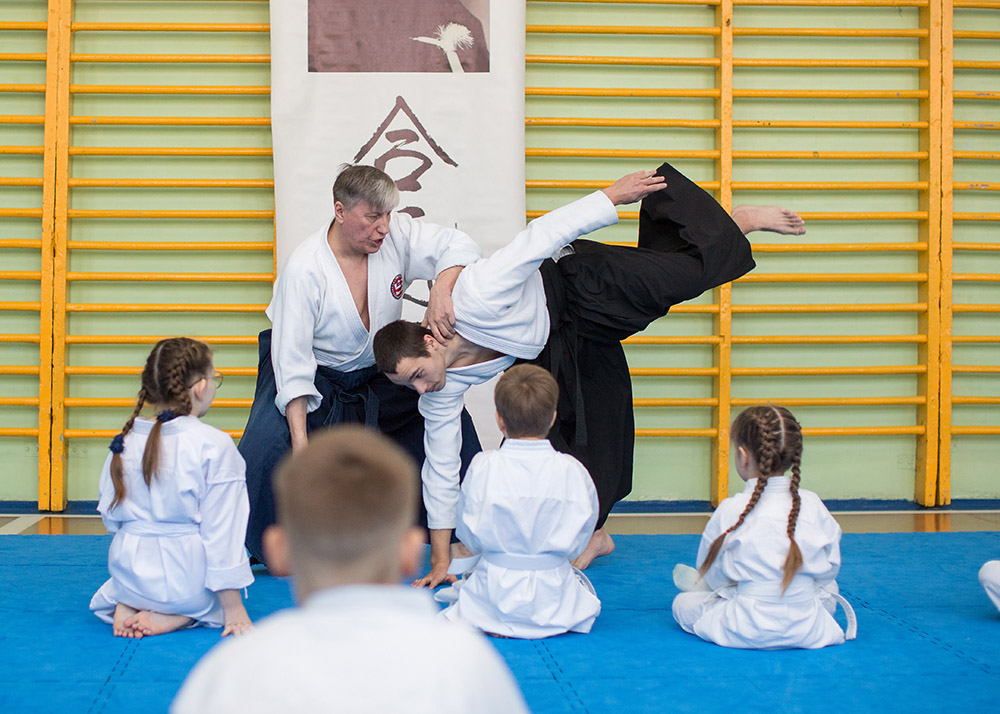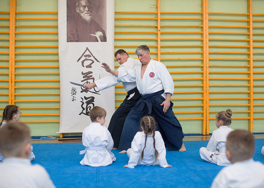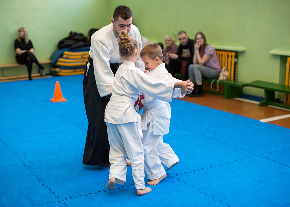 Тренер-преподаватель — Сидельников Константин (2 дан) и Руткевич Никита (1 дан) подготовили показательное выступление, где продемонстрировали базовые приемы айкидо. Детям и присутствующим родителям выступление наших тренеров очень понравилось.