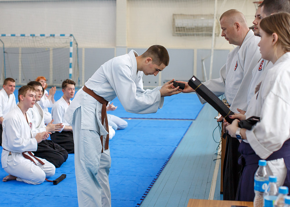 26 мая 2024 г. в спортивном комплексе АмГУ в АООСО Айкидо Айкикай «Семь самураев» прошел международный квалификационный экзамен по айкидо. По решению штаб-квартиры международного отдела Хомбу Додзе (Токио Япония), председателю АООСО Айкидо Айкикай «Семь самураев» Мезенцеву Э.И было поручено провести этот экзамен. К сдаче были допущены 54 человека, спортсмены сдавали на 5-1 Кю и 1, Дан.