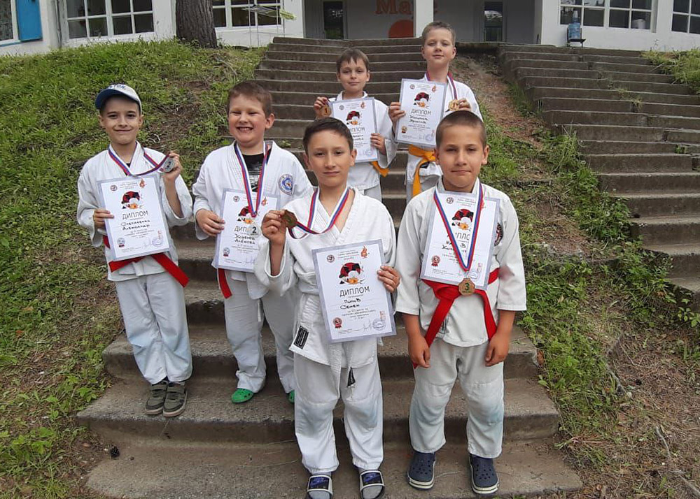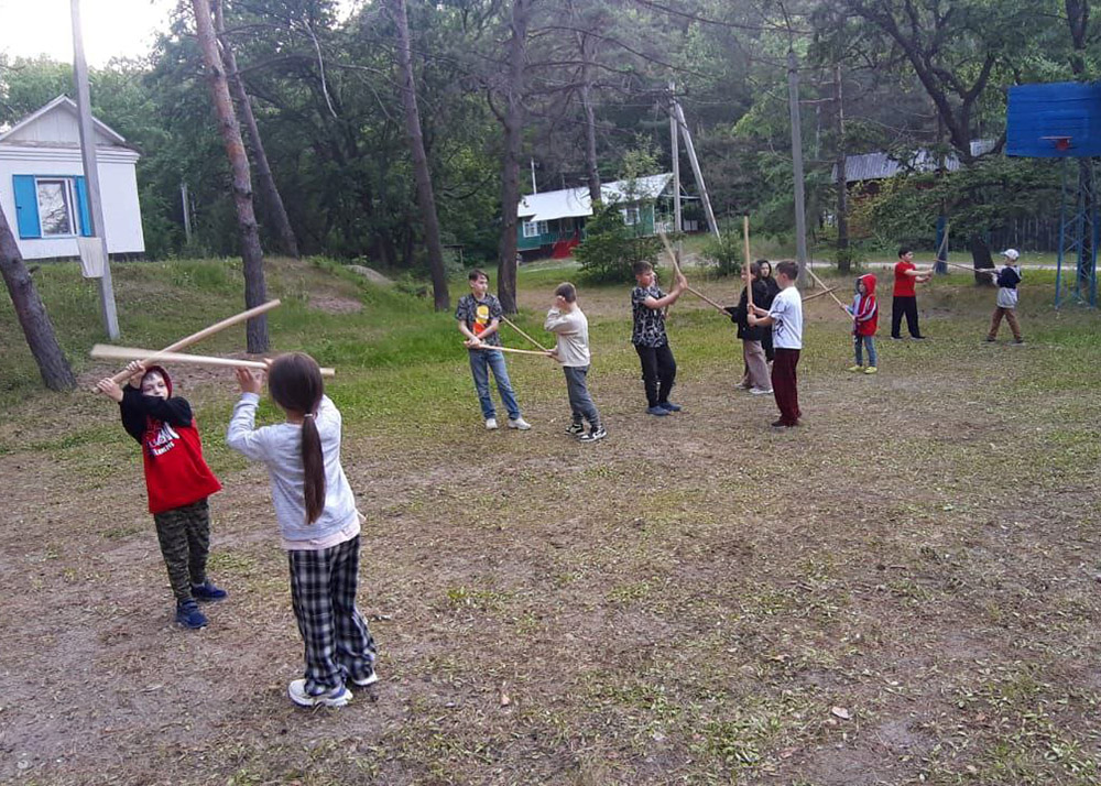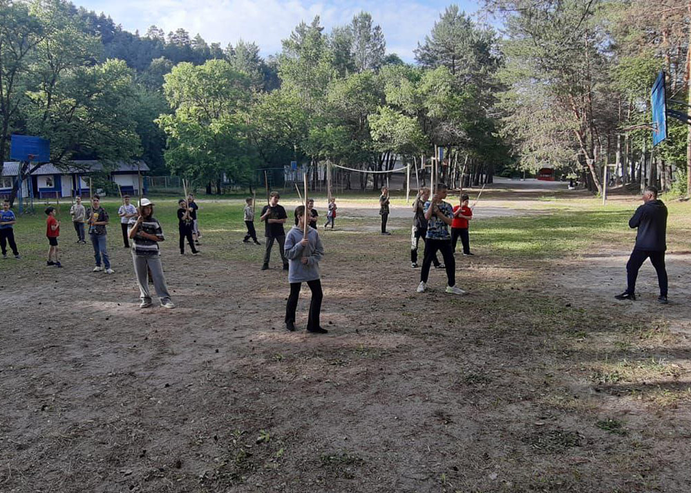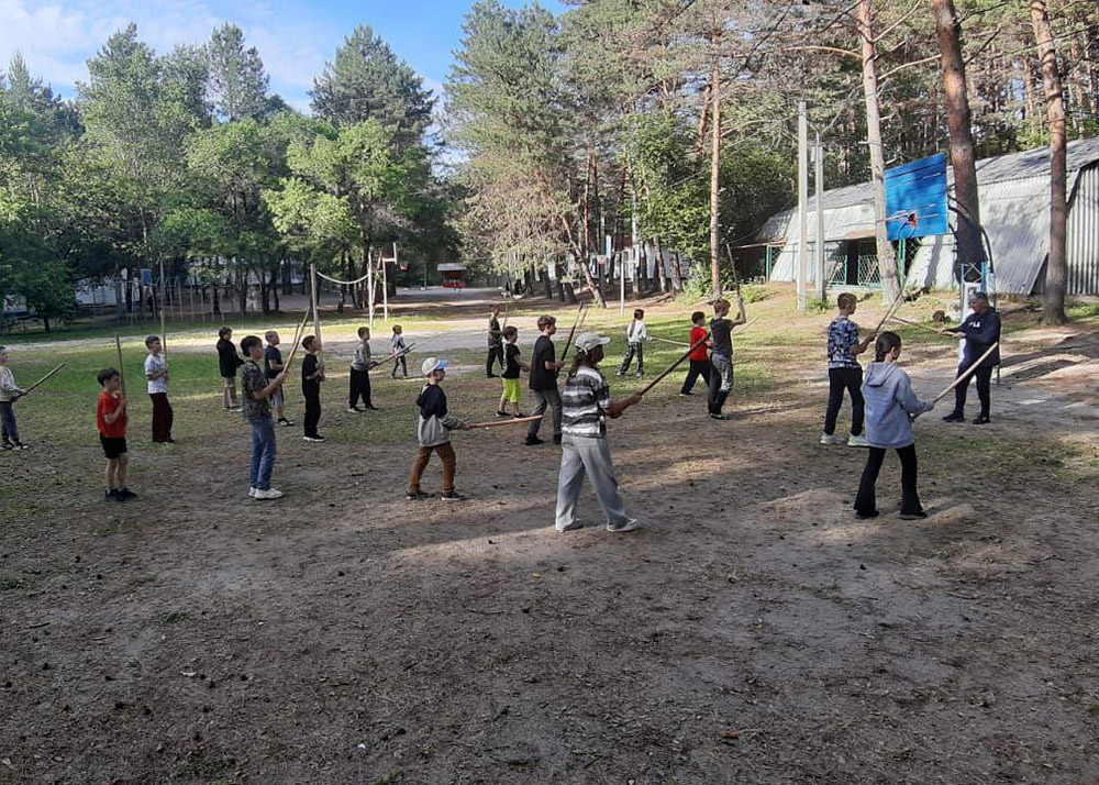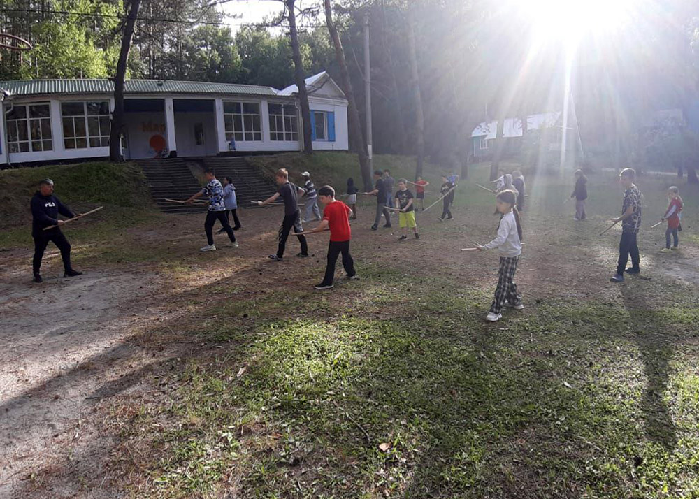 С 7 по 16 июня наши юные спортсмены в количестве 26 человек, прошли десятидневную спортивную подготовку на базе оздоровительного лагеря «Огонек». В этот заезд впервые собрались спортсмены из трех городов: Благовещенск, Хабаровск и Комсомольск на Амуре. За десять дней ребята посетили 30 тренировок по айкидо айкикай, «Нихон Дэн Дзю Дзюцу Дзю Току Дзюку» и «Тэнсин Сёден Катори Синто Рю» (по 3 тренировки в день), узнали много нового материала по этим видам единоборств, новые наработки по улучшению техники. Помимо тренировок по айкидо проходили: утренняя гимнастика, соревнования по лапте, пионерболу, сумо, кросс-фиту, парному айкифристайлу, фехтование на мечах по школе 15 века — «Тенсин Седен Катори Синто Рю», работали с ножом (танто), дзе (шест), нагинатой, бегали на 60 метров. Каждый день тренерский коллектив: это Мезенцев Э.И. (5 дан) и Мисак В.Е. (4 дан) готовили подвижные игры, весёлые старты, провели соревнования в дартс (метание дротиков). В свободное от тренировок время дети, посещали концерты, дискотеки, местный кинотеатр. Каждый день разыгрывался комплект медалей по определенному виду спорта в командном и личном зачете. Перед отъездом домой каждый спортсмен получил сертификат, подтверждающий прохождение спортивных сборов на базе оздоровительного лагеря «Огонек». Спортивные сборы — хороший опыт в подготовке юных спортсменов. Все вернулись домой загорелые, полные сил и здоровья, получив жизненный опыт и новые знания по боевым искусствам.