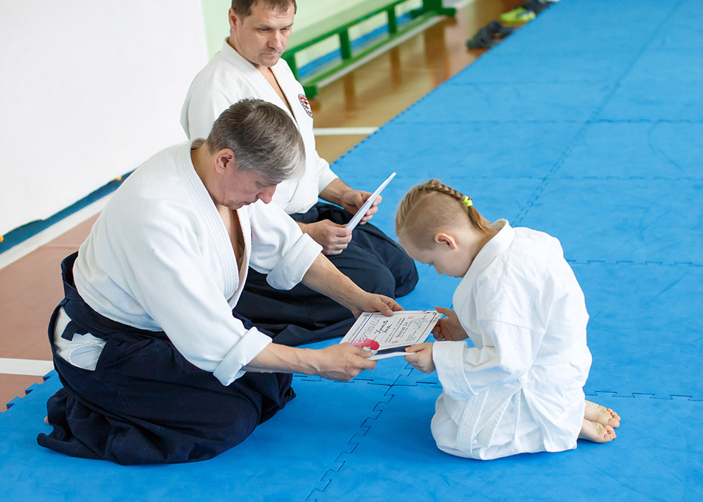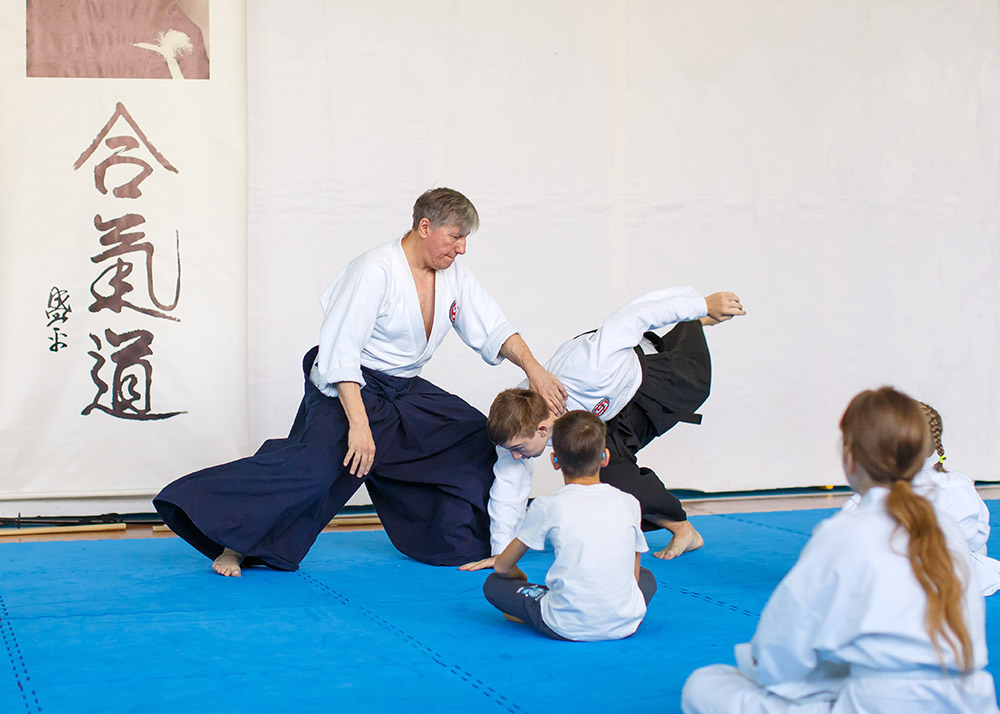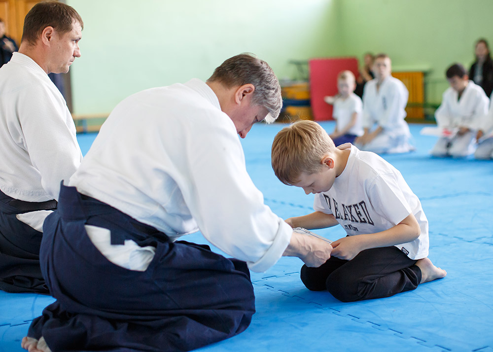 13 октября 2024 г. в одном из залов нашей организации прошел детский запланированный семинар по айкидо. Вели семинар председатель организации — Мезенцев Э.И (5 дан) и тренер преподаватель Мисак В,Е., (4 дан). Два часа ребята отрабатывали экзаменационную технику на 11 кю (белый пояс) — передвижения, кувырки и безопасные падения. На ковре собрались 13 юных спортсменов из двух залов города. Родители пришли поддержать юных айкидок, посмотреть на достижения своих детей.