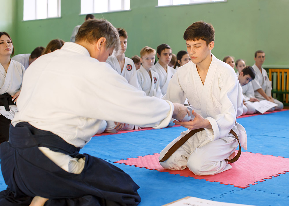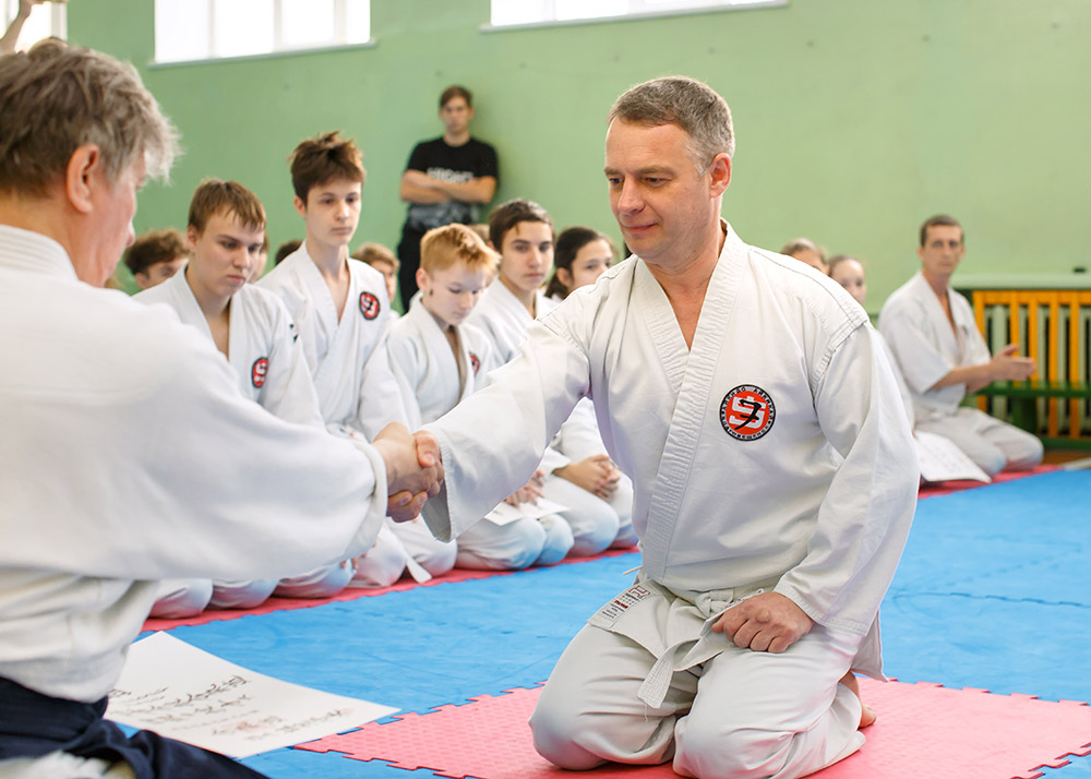 После небольшого перерыва спортсменам организации председатель Мезенцев Э.И. торжественно вручил японские документы — сертификаты, подтверждающие успешно пройденную аттестацию в мае месяце. В этот раз получили сертификаты на 5 кю — 20 человек, на 4 кю — 14 человек, на 3 кю — 8 человек, на 2 кю — 2 человек и на 1 кю — 5 человека.
