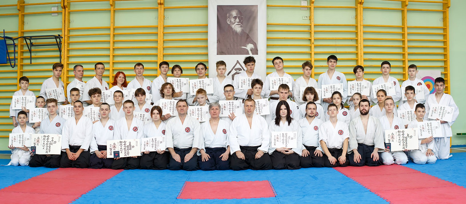 В начале ноября пришла долгожданная посылка из Японии, международный отдел Хомбу додзе (Токио) переслал дипломы наших студентов, подтверждающие успешную сдачу экзамена. 50 спортсменов пришли в этот день получить сертификаты подписанные Дошу Уесиба Моритеру.
