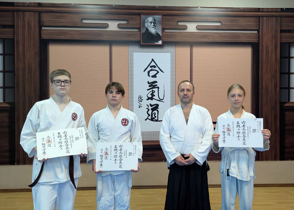 26 ноября состоялось торжественное вручение сертификатов в г. Хабаровске. Данные сертификаты удостоверяют, что их обладатели сдали международные экзамены по программе Хомбу Додзе и котируются по всему миру. Поздравляем Куракову Арину и Удод Богдана с присвоением степени 5 кю. С 3 кю и, соответственно, с коричневым поясом поздравляем Богатырева Дмитрия.