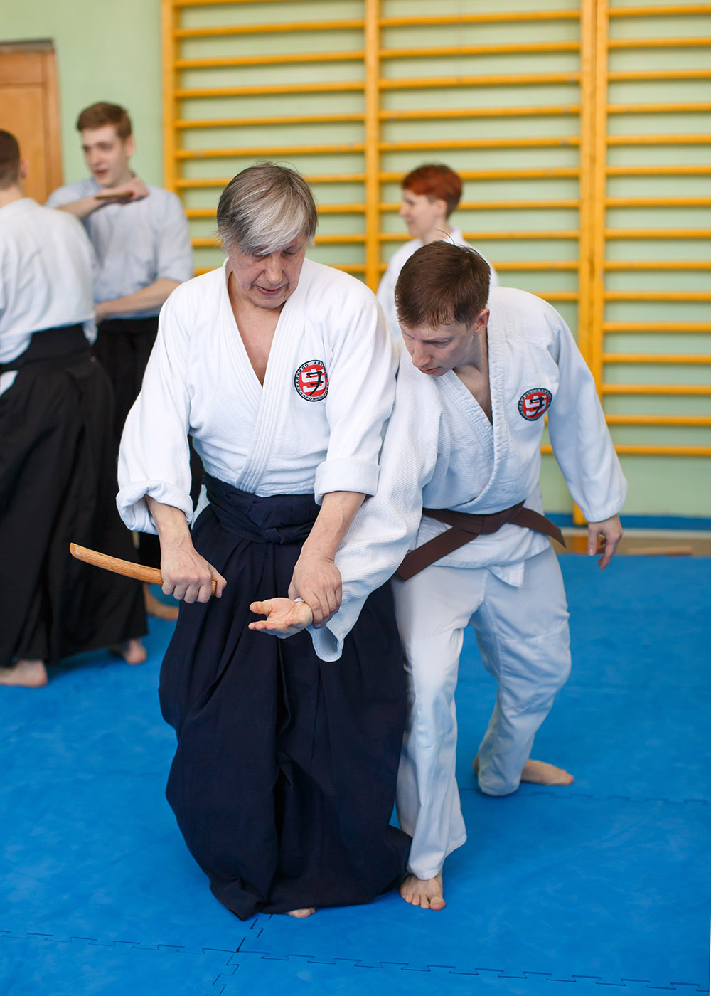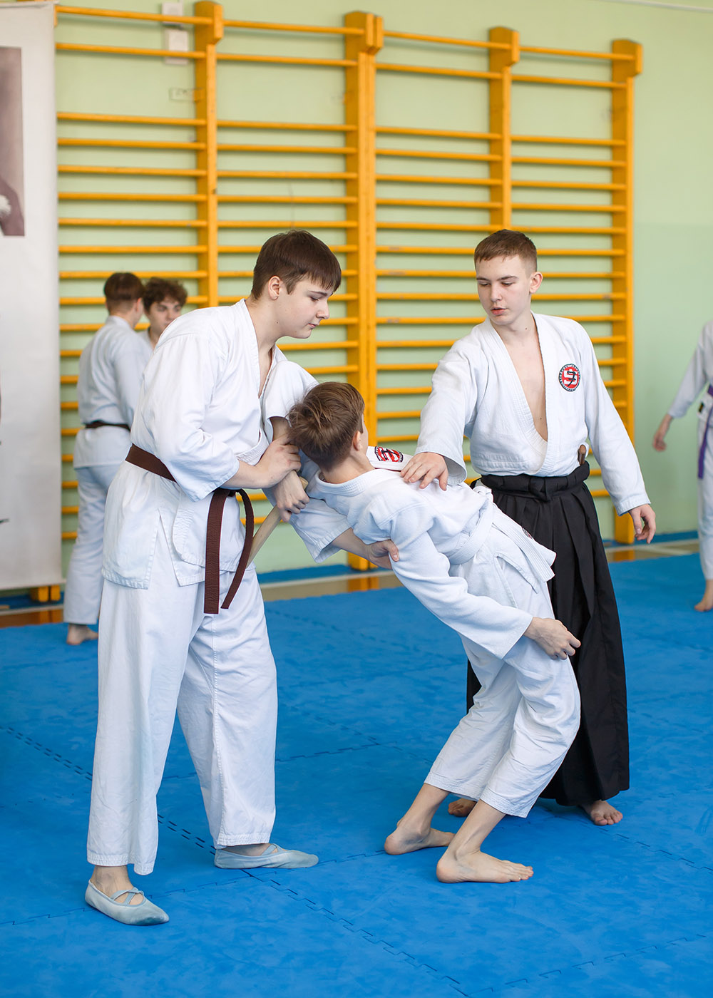 С 7 по 9 февраля 2025 года, прошел очередной установочный семинар по айкидо. В одном из залов города, в это воскресное утро собрались более семидесяти спортсменов нашей организации разной квалификации и возрастной категории. Поддержать мероприятие приехал филиал нашей организации из г.Хабаровска, руководитель Удод Антон Евгеньевич (2 дан ). Семинар запланировали еще в летний период 2024 г. Провел семинар председатель организации Мезенцев Эдуард Иванович (5 дан), он показал на тренировках много интересной и ценной информации, и поделился новыми знаниями со своими учениками. Большое внимание уделил тренерскому составу, для того, чтобы они в свою очередь более качественно подготовили юных спортсменов к очередным экзаменам. На семинаре разобрали и отработали в первый день занятий базовые формы захвата на разноименную руку. Практически все техники были посвящены броскам кокю наге. Второе занятие на следующий день прошло по технике котэ гаэши. Были продемонстрированы и изучены более пятнадцати вариантов этого приема. Вечерняя тренировка в этот день пошла по программе Уширо рете дори. И последняя заключительная тренировка посвящена оружию танто дори. Основной темой этого семинара стала — слаженность и гармония взаимодействия между партнерами (уке и тори). Эдуард Иванович показал основные техники айкидо — это икке, сихо наге, ирими наге, кокю хо и котэ гаэши. За три дня тренировок спортсмены получили новые знания и большой эмоциональный заряд. В конце семинара по традиции была сделана групповая фотография на память.
